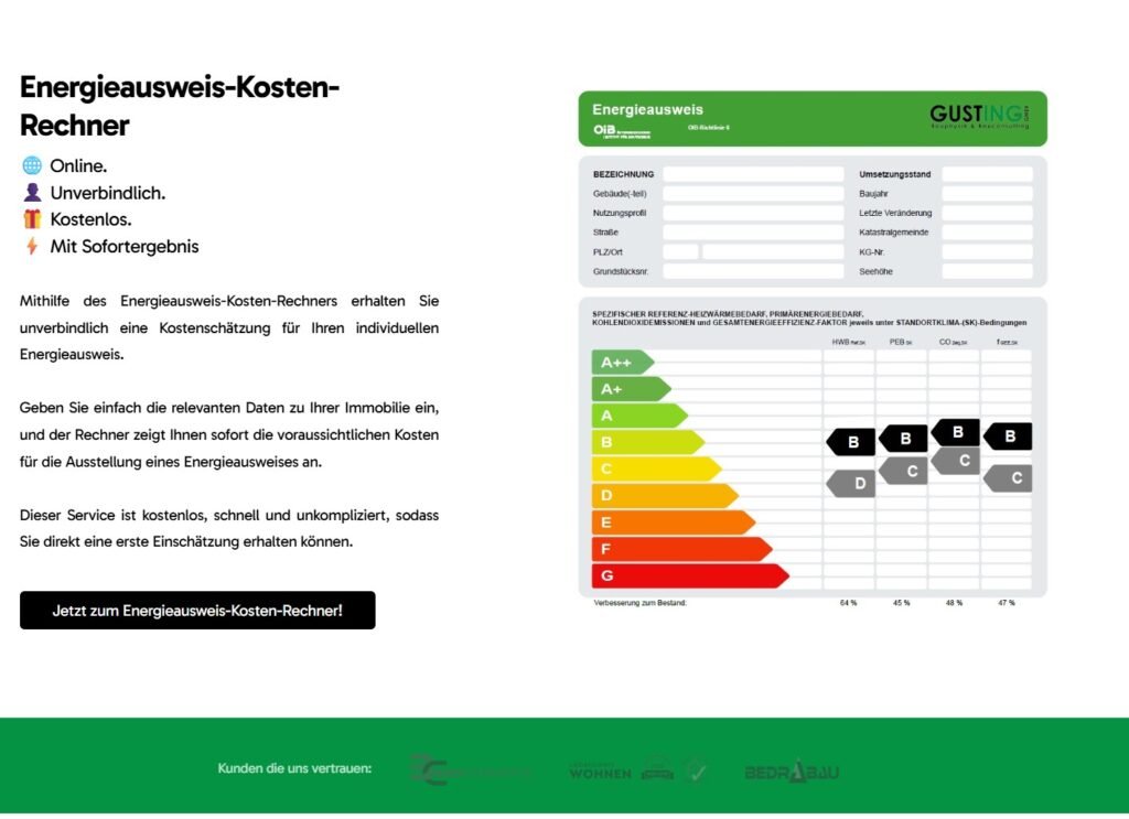 Im Rahmen eines mehrmonatigen SEO-Projekts entwickelten wir für die Gusting GmbH eine leistungsorientierte Content- und Sichtbarkeitsstrategie. Ziel war es, den organischen Kanal so auszubauen, dass er konstant qualifizierte Anfragen für Energieausweise liefert. Durch datengetriebene Analysen, strategische Keyword-Clustering und eine intelligente Nutzerführung entstand eine holistische SEO-Architektur – von technischer Optimierung über gezielten Contentaufbau bis hin zu interaktiven Tools. Dabei kamen professionelle Tools wie Google Search Console, SISTRIX und ahrefs zum Einsatz, um Performance und Potenziale laufend zu validieren. Das Ergebnis: Deutlich gesteigerte Sichtbarkeit, relevante Rankings für hochkompetitive Keywords und ein messbarer Zuwachs an organischen Anfragen – lokal wie national.